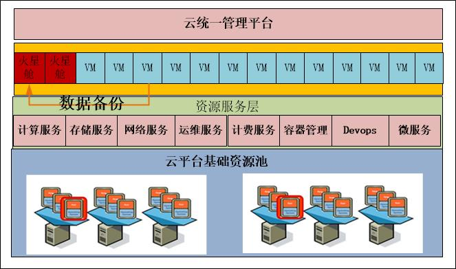 云平臺+云上火星艙,該方案實現用戶在不同云平臺之間的數據備份與恢復服務。